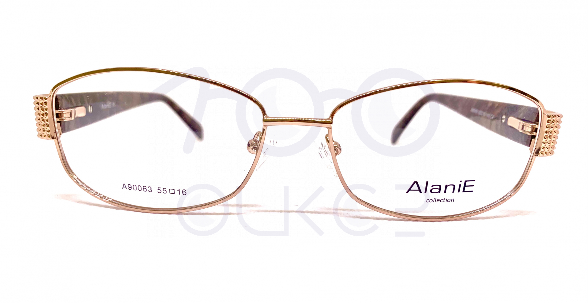 Оправа металлическая золотая с коричными заушниками